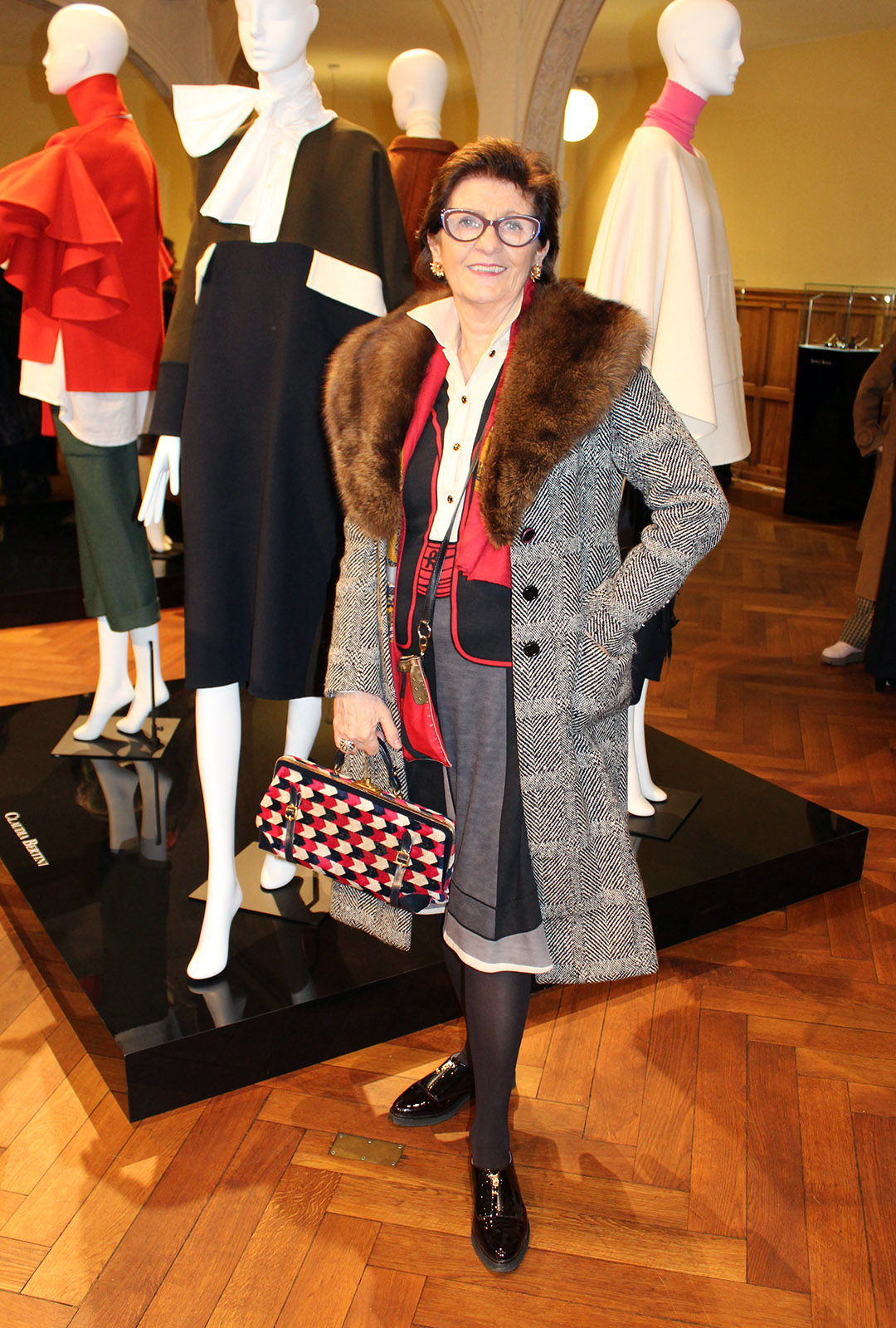 grauer mantel mit Fellkragen