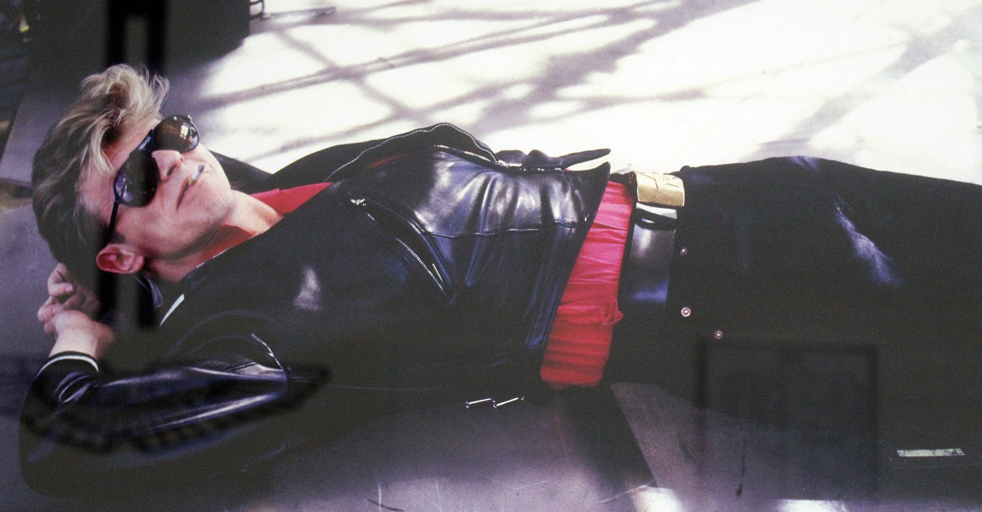 Bowie_liegend mit Sonnenbrille